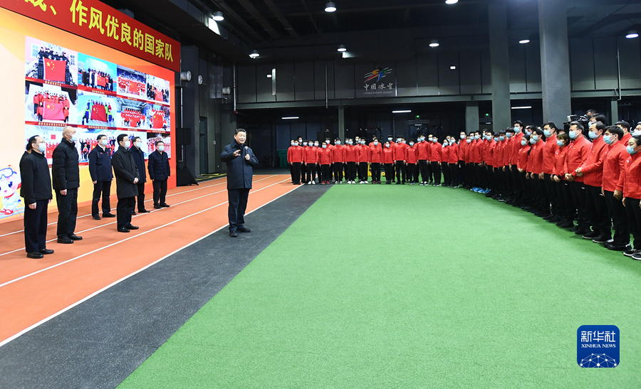 专项体能训练馆内,运动员、教练员、服务保障人员代表以热烈掌声欢迎总书记的到来。习近平向大家挥手致意。他指出,再过一个月,北京冬奥会就要开幕了。今天是元旦后上班第一天,我来专题调研北京冬奥会、冬残奥会筹备工作,主要是来给大家鼓劲加油。作为东道主,我们不仅要办好北京冬奥会、冬残奥会,而且要努力取得好成绩。希望大家抓住最后的备战关键期专心训练,以最佳的竞技状态迎接大赛的到来。习近平强调,人生能有几回搏,长期准备、在此一举。希望大家增强为国争光的志气和勇气,坚持拼字当头,敢于拼搏、善于拼搏,在奥运赛场展现新时代中国运动员的精神风貌和竞技水平,力争在竞技上、道德上、风格上都拿最好的奖牌。习近平预祝大家取得好成绩,大家报以热烈掌声,高呼“请总书记放心!”“我们准备好了!”