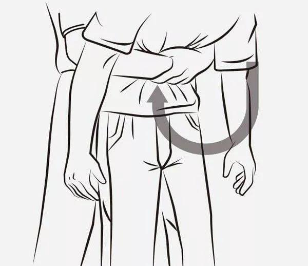 自救时:将上腹部迅速倾压于椅背、背角上,然后做迅猛向前倾压的动作,以造成人工咳嗽,驱出呼吸道异物。