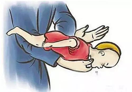 对于3岁以下儿童,应立即将孩子抱起,一只手捏住孩子的颧骨两侧,另一只手托住孩子的后颈部,在孩子的背部拍1-5次,观察是否吐出异物。