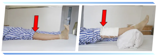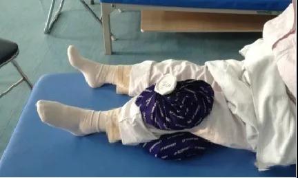 手术当天一般要求去枕平卧,患肢伸直脚尖朝上放置,小腿及足跟下垫枕头,以抬高消肿,同时膝关节侧方予以冰袋冷敷减少渗出。