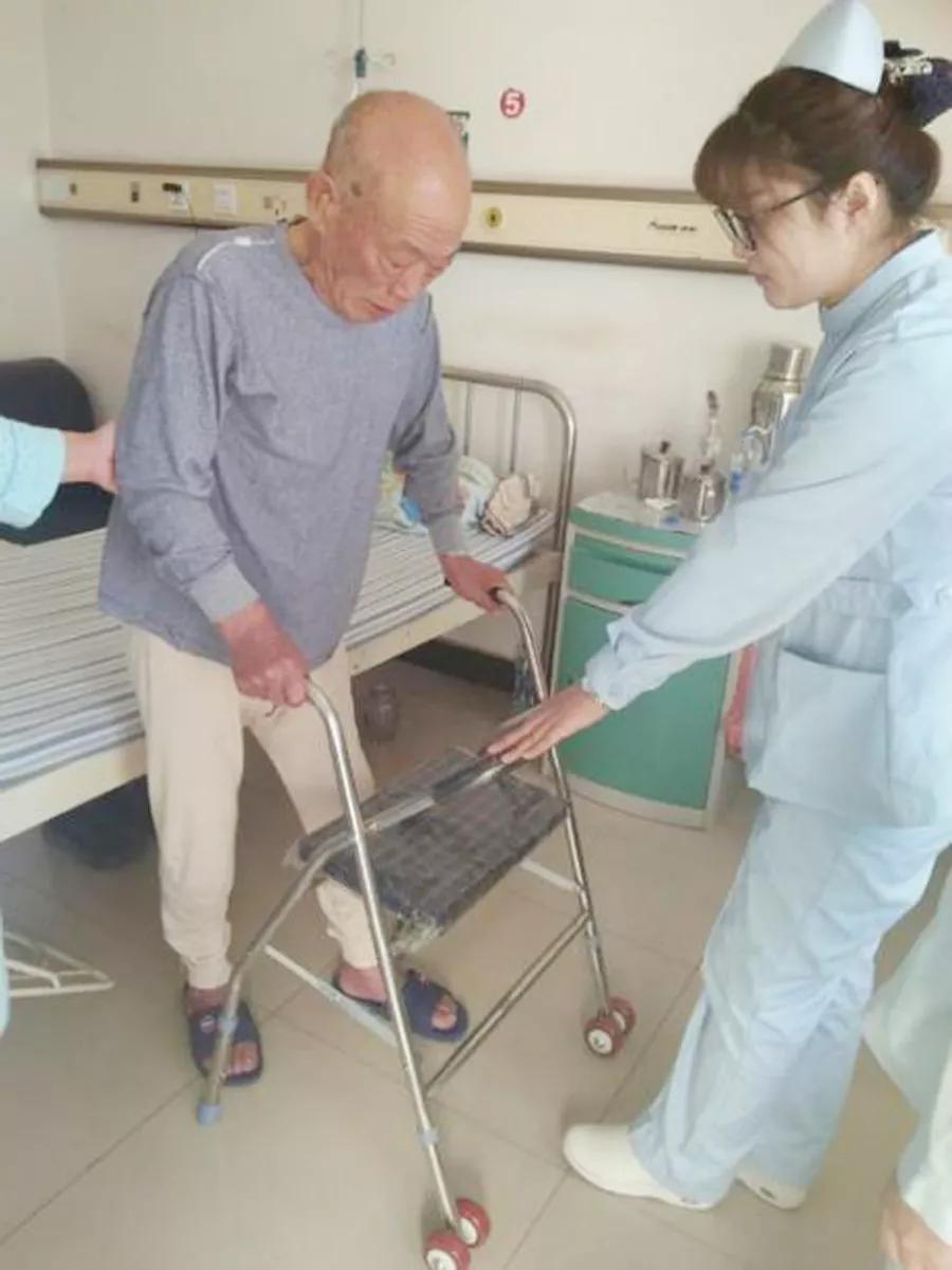 方法:在陪护人员陪护下,扶助行器练习平路行走,膝关节负重约10公斤,开始时原地高抬腿踏步,之后高抬腿行走,每天练习3-4次,每次10-20分钟。