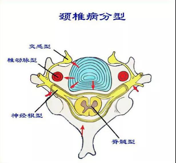 交感神经型颈椎病:主要表现为头痛、头晕、眼花、耳鸣、胸闷、心慌、恶心、呕吐、手足发凉、味觉减退、烦躁、失眠、心律失常等全身各系统症状,颈部疼痛不适可以不明显,这种类型最易误诊误治,也最不容易确诊,需要排除心脑血管疾病及耳源性、眼源性疾病后才能明确。病因主要是颈部肌肉紧张或颈椎骨质增生刺激交感神经引起。