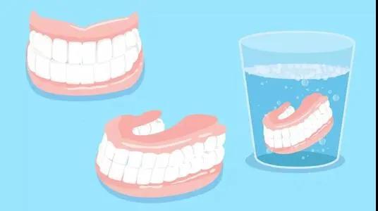 ◇ 饭后应取下“义齿”清洗干净后再戴上,以免食物残渣沉积于“义齿”上。睡前应取下“义齿”,用牙膏或肥皂水刷洗干净,置于冷水中,但不要用开水、消毒剂浸泡。