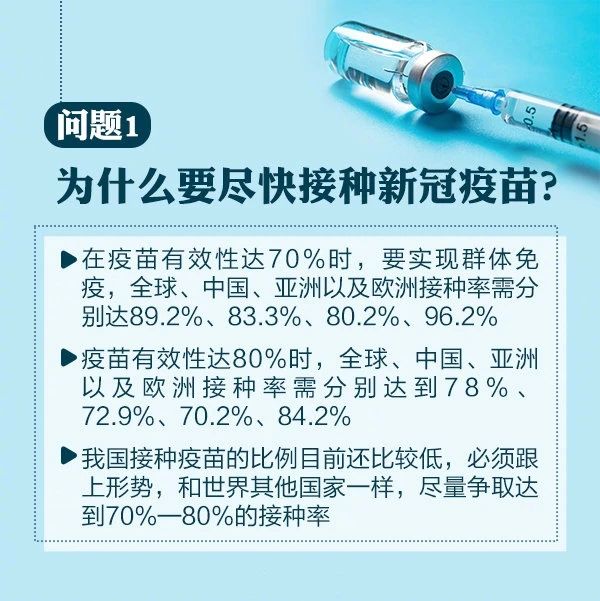 近日,钟南山、张伯礼呼吁尽快接种新冠疫苗,为预防新冠尽一份力量。目前,我国接种疫苗比例比较低,应尽量争取达到70%-80%的接种率。近期新冠疫苗接种新变化有哪些?接种新冠疫苗有哪些注意事项?新冠疫苗能和其他疫苗同时接种吗?戳图↓↓收藏了解!