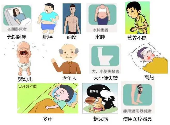 皮肤出汗或排泄物刺激 老年人皮肤老化,肌肉萎缩,皮下脂肪减少,皮肤弹性差,局部皮肤在受到长时间汗液、尿液、粪便等刺激后会变得潮湿,局部酸碱度发生改变,表皮角质层的保护能力下降,皮肤容易发生破溃,进一步导致皮肤溃疡发生。