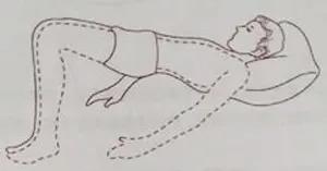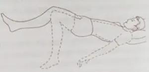 桥式运动-单侧桥式运动:在患者较容易地完成双桥式运动后,让患者悬空健腿,仅患腿屈曲,足踏床面抬臀。