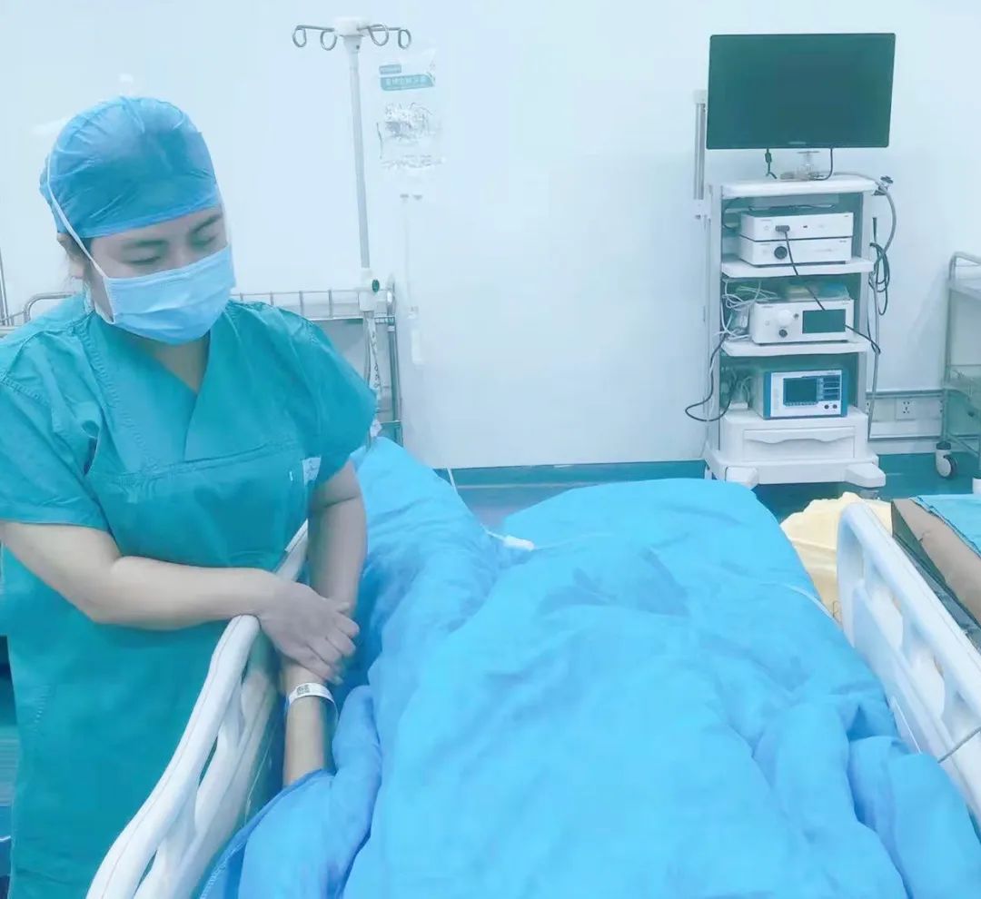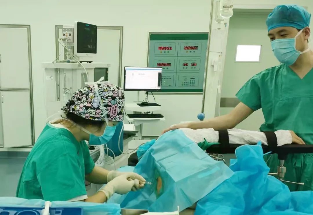 除了在手术室忙碌的麻醉医生,在医院内镜室里,麻醉科的代静医生也在为需要无痛胃肠镜检查的患者进行全身静脉麻醉,让患者在睡梦中享受舒适安全的诊疗服务;在门诊楼2楼麻醉科的疼痛门诊里,科主任代洪燕和赵墨林医生采用臂丛麻醉下手法粘连松解术,为复诊的腰椎病、肩周炎患者解除病痛。
