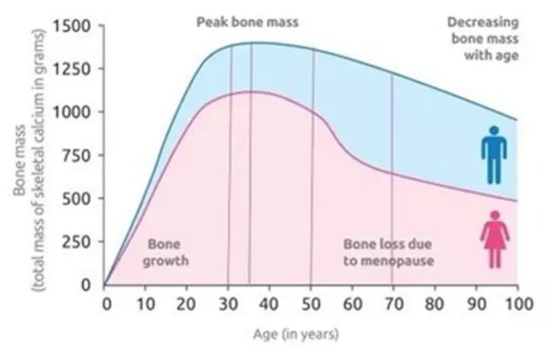 骨骼的骨量随着年龄增加而增加,一般约在35岁时骨量达到高峰,之后逐渐减少。当骨量流失严重,骨骼呈现中空疏松、脆弱且易骨折状况时,即可明确发生了骨质疏松症。