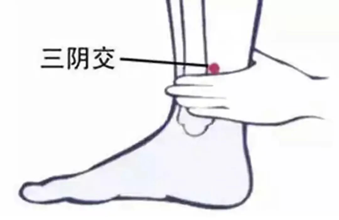 三阴交是足三阴经交会的地方,能同时对肝、脾、肾起到调节作用,中医认为肝藏血,主疏泄;脾统血,主运化,为后天之本、气血生化之源;肾藏精,精血同源互化,肾又为先天之本,主生长发育和生殖。经常按揉或艾灸三阴交可以活血调经、行气止痛、健脾除湿、补益肝肾,可缓解神经衰弱,改善失眠,治疗消化不良、腹痛、腹泻等疾病。
