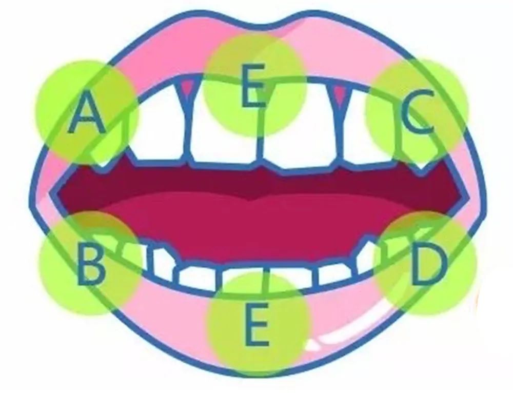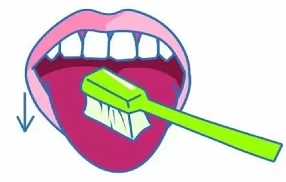上颚后牙的舌侧部分不易刷到,要将刷毛对准牙齿与牙龈的交接处,刷柄要贴近大门牙。