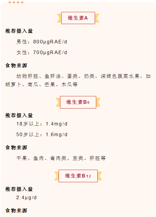 成人维生素推荐摄入量与食物来源