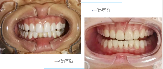 口腔科医师为丽丽进行了铸瓷贴面修复术,13-23、43-33铸瓷贴面修复术后颜色饱满,恢复外形,牙龈情况也得到很好改善,丽丽非常满意。