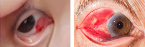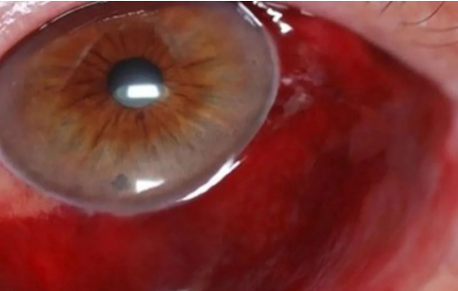 结膜下出血是指位于眼球表面的结膜下微血管破裂或渗透性增强,渗出的血液在结膜与眼球之间凝结,造成急性红眼睛、出血等表现。出血量大时,可表现为白眼球处弥漫红色外观,随着出血逐渐消散变为棕黄色,最后完全吸收消失。