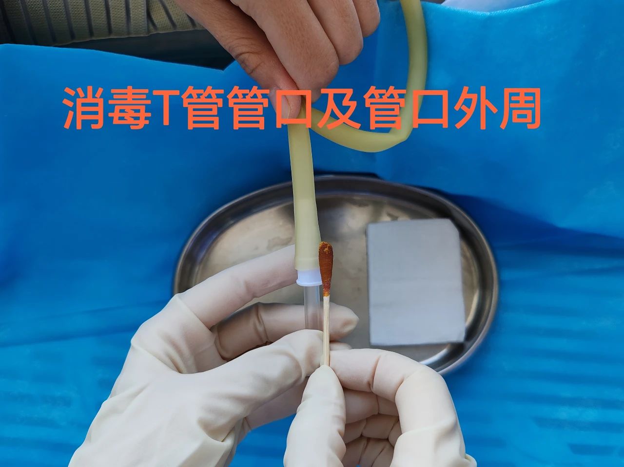 ◆ 环形消毒T管管口及管口上下5厘米范围2次。