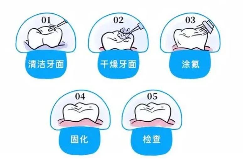牙齿涂氟是运用氟化物对每一颗牙齿表面进行氟化处理,可以促进釉质的再矿化,增加釉质抗脱矿的能力,降低菌斑中的酸性产物。
