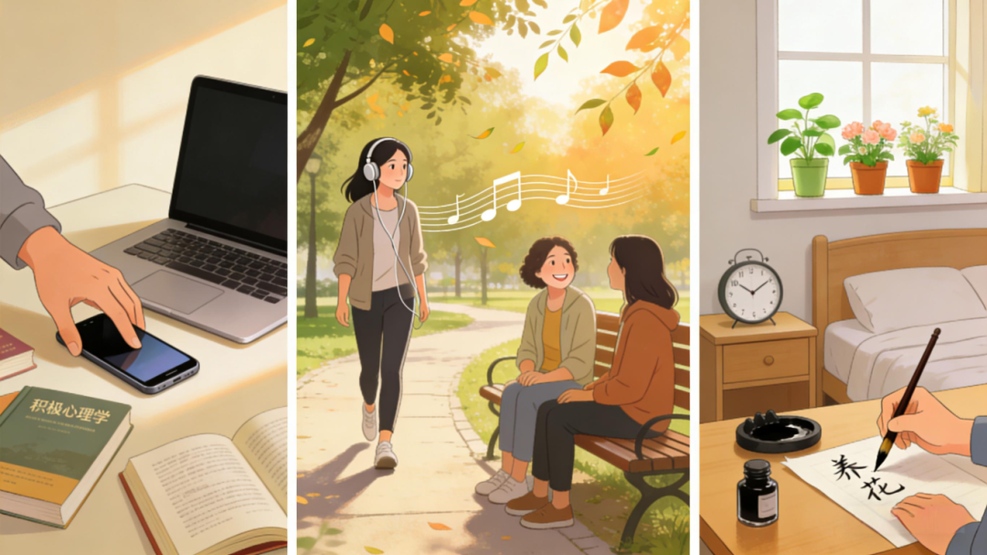 用“平和方式”释放压力:可选择散步、听舒缓音乐、和朋友倾诉等低强度方式释放压力。