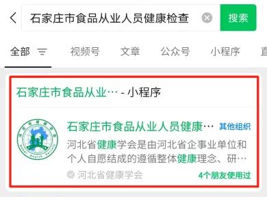或微信搜索“石家庄市食品从业人员健康检查”小程序
