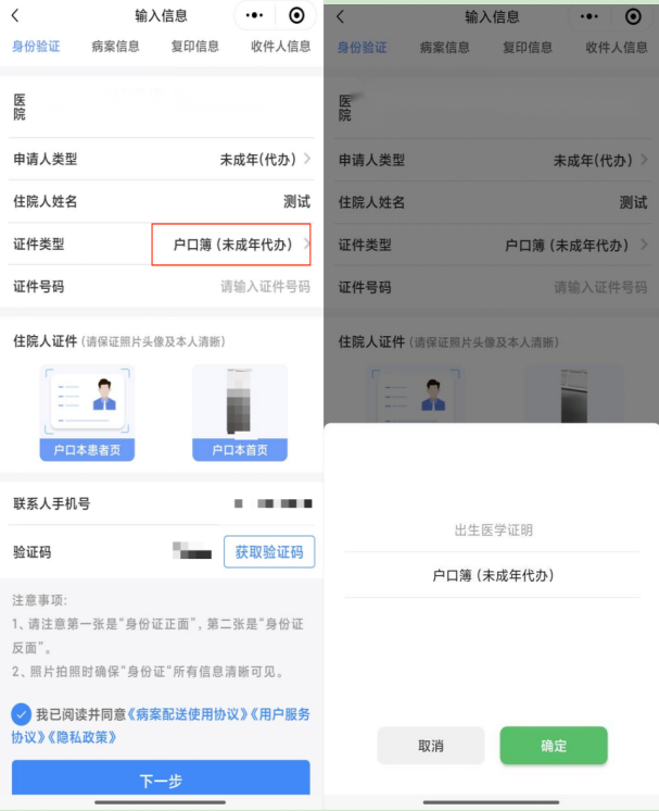 ▶未成年人代办:提供未成年人出生医学证明或户口簿(户口本首页+户口本患者页)