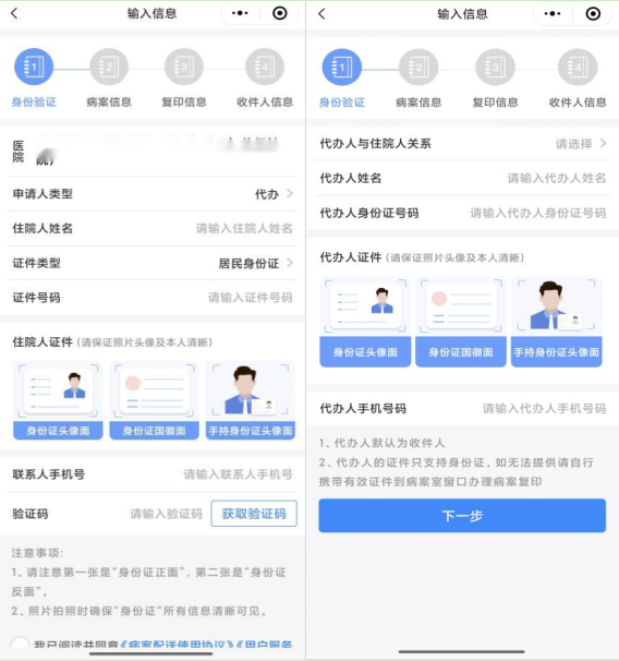 ▶代办人申请:填写代办人+本人身份信息