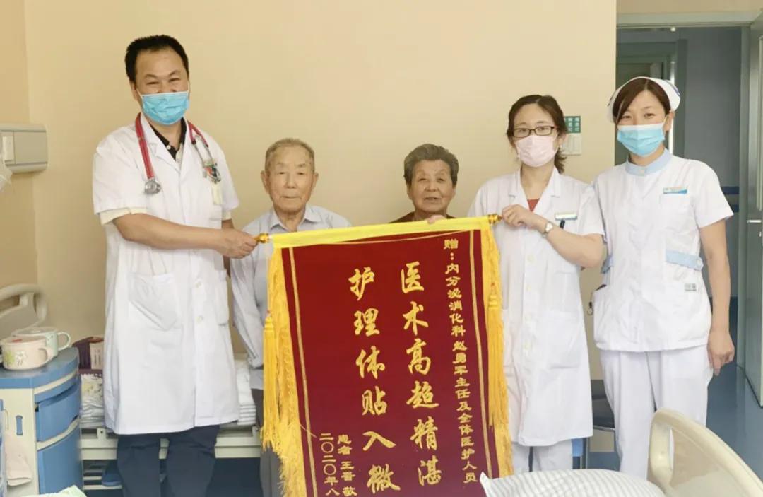 8月的一天,内分泌消化科收到一面印有“医术高超精湛、护理体贴入微”的锦旗,送旗人是参加过抗美援朝的老兵,94岁的王爷爷。