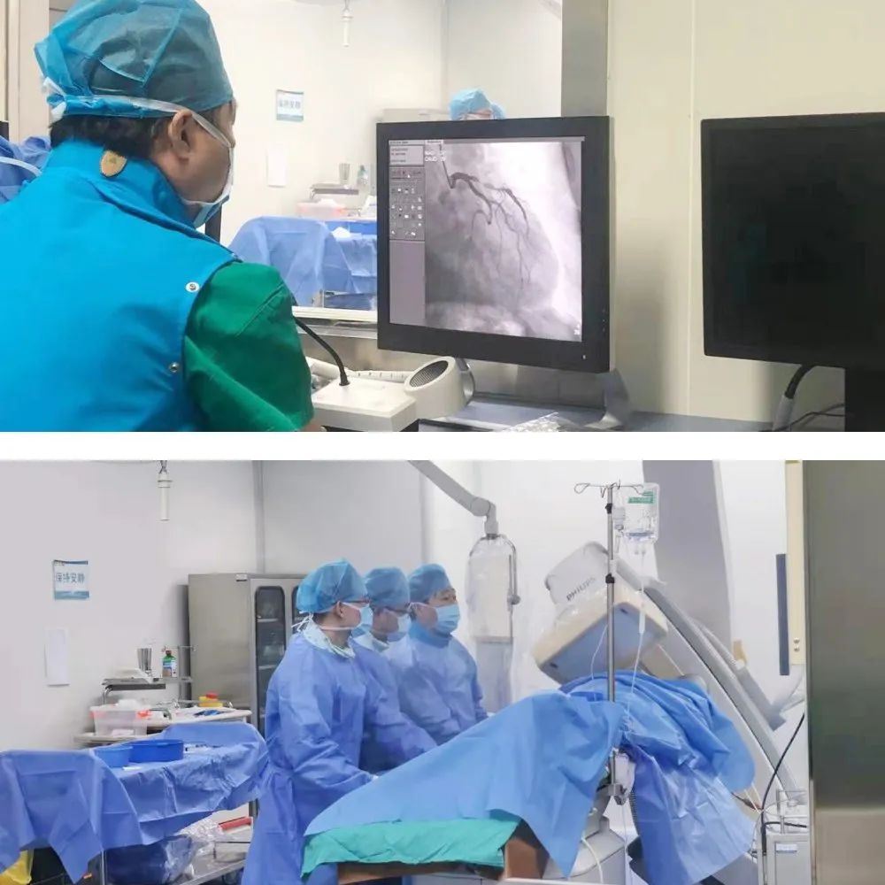 袁老先生患有冠心病多年,曾因急性心肌梗死分别于2017年和2018年各植入一枚冠状动脉支架,术后情况良好。可是,近一周来,袁老先生再次出现了胸闷、胸痛、轻微活动后气短等不适症状,到河北省第八人民医院(河北省老年病医院)心内二科就诊。心内二科专家为老人完善相关检查,并与首都医科大学附属北京安贞医院专家远程会诊,诊断为“急性冠脉综合征”,建议其行冠脉介入治疗,考虑到袁老先生冠状动脉血管复杂病变可能性较大,遂预约北京安贞医院心血管内科专家张新勇来院共同手术。