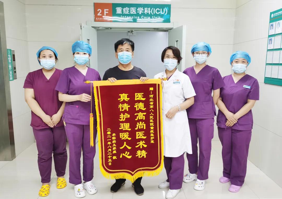“医德高尚医术精,真情护理暖人心”。近日,在河北省第八人民医院(河北省老年病医院)住院治疗的李老家属,手捧锦旗和情真意切的感谢信,送到重症监护室主任刘俊伏和护士长申美玲手中,真诚感谢医护人员的精心治疗和优质服务,称赞他们医术精湛,医德高尚,不是亲人胜似亲人。