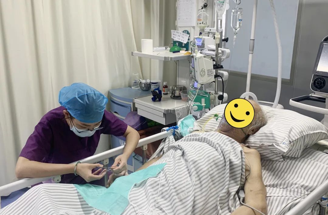 三分治疗,七分护理。“美小护”团队每日认真观察记录病情变化、精心护理,为老人擦浴、定时翻身、扣背预防压疮,保持身体干燥,让老人处于最舒适的状态。经过一系列的精心治疗护理,老人病情趋于稳定,可间断经口进食。