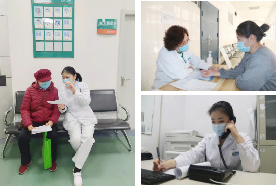 右下:健康管理团队成员与体检者电话沟通,提醒健康注意事项