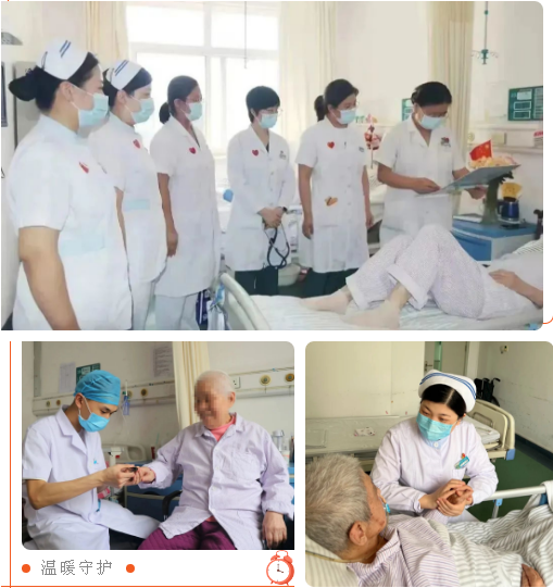 中西医结合科“无陪护”病房的工作人员就是这样的一群天使,在家里,我们是儿子女儿、是妻子丈夫、是父亲母亲,但是在患者身边,我们时刻扮演着“儿女”的角色,擦浴、洗头、翻身、剪指甲、换衣裤、处理大小便等等,我们在患者身旁扮演的角色,还可能是美发师、美甲师、美术老师、卫生员、厨师。同时,我们还是通讯员,我们要及时与家属沟通病情、沟通生活心理等等;无论是主管医生还是责任护士,在夜里回复家属微信是家常便饭,大到儿女在外地怕见不到亲人最后一面托付后事的安排,小到想问问自己的亲人今天拉的大便颜色是否正常,我们都会耐心一一解答,我们奉献出的不仅仅是知识和技术,还有一颗充满大爱的心。