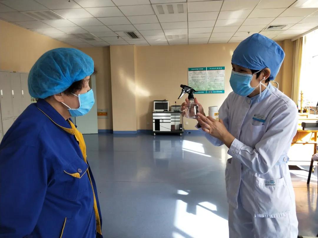 在定期对全科人员进行院感知识防控培训的同时,还对保洁人员进行专项培训,包括消毒液配置的比例,消毒方法等。