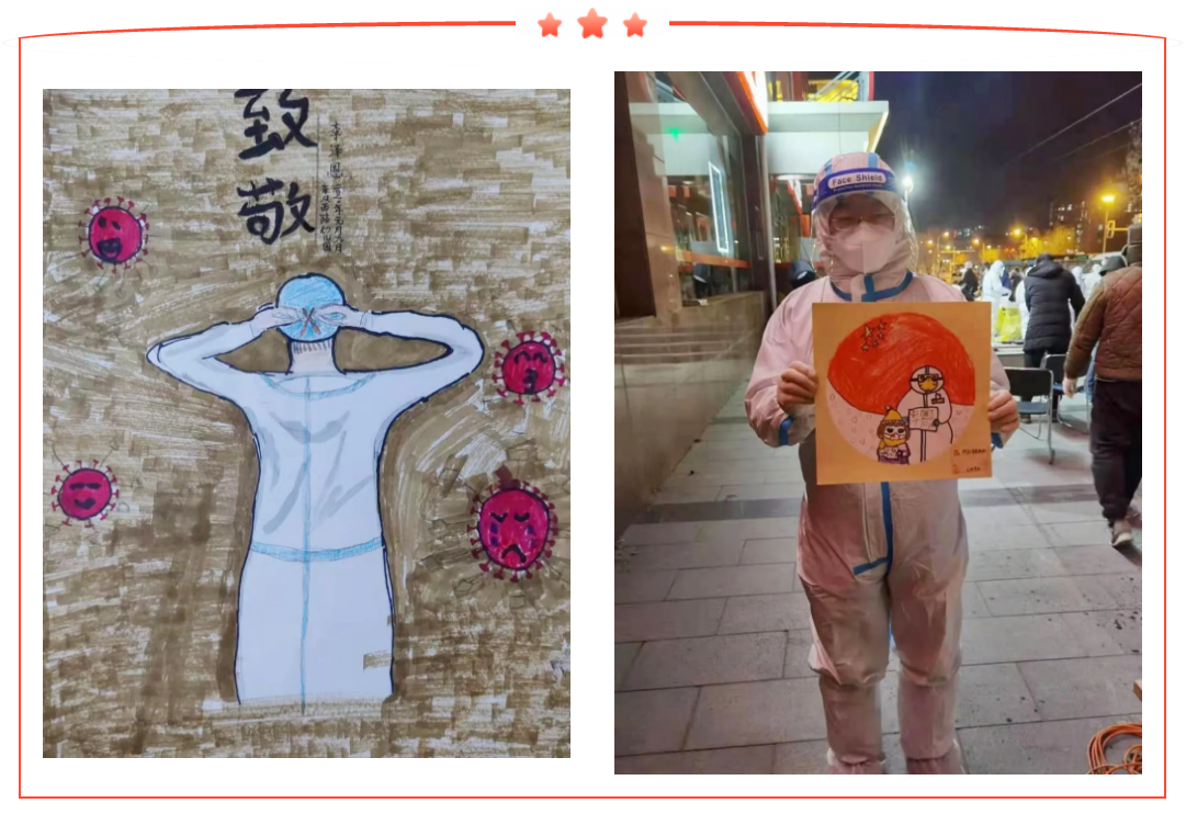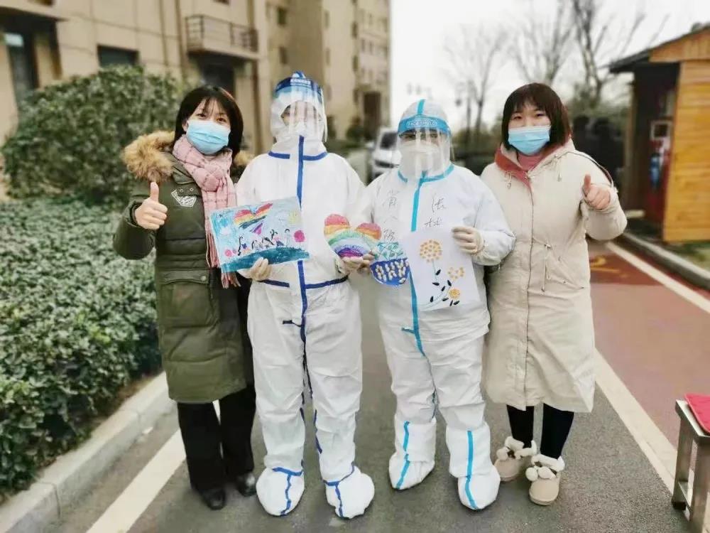 石家庄市的小朋友纷纷把自己的绘画作品送给河北省第八人民医院(河北省老年病医院)核酸检测人员