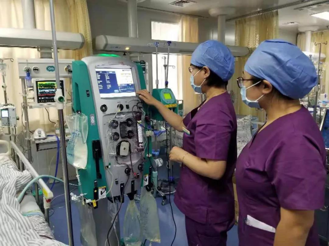 刘俊伏调节血滤参数,为患者做进一步治疗