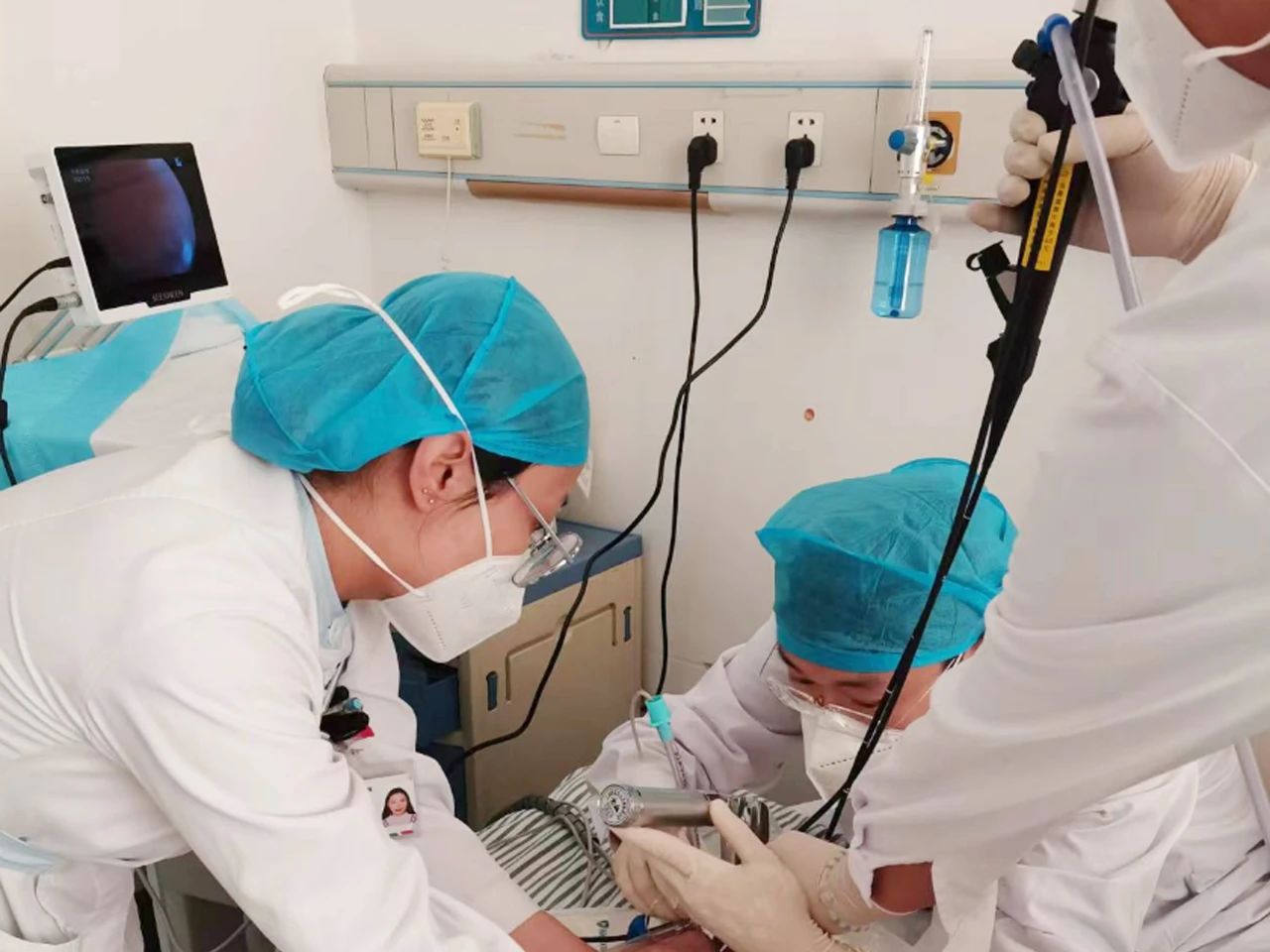 在全科医疗/肿瘤科病区住院治疗的大多是“一体多病”的重症患者,刘爷爷因慢性阻塞性支气管炎合并感染住院,痰液粘稠不易咳出,血氧持续下降,呼吸困难,杨智晖穿着密不透风的防护服,立即组织医护团队为老人行床旁支气管镜下检查、吸痰,根据病情进行床旁气管插管,刘爷爷得到及时、有效的救治。老人的女儿含着眼泪说:“疫情当前,我父亲不仅能得到有效救治,我们生活的还能得到医护人员无微不至的照护,真是太感谢你们了!”