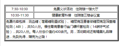 义诊地点:河北省老年病医院住院楼一楼大厅(青园街与东风路交叉口东南角)