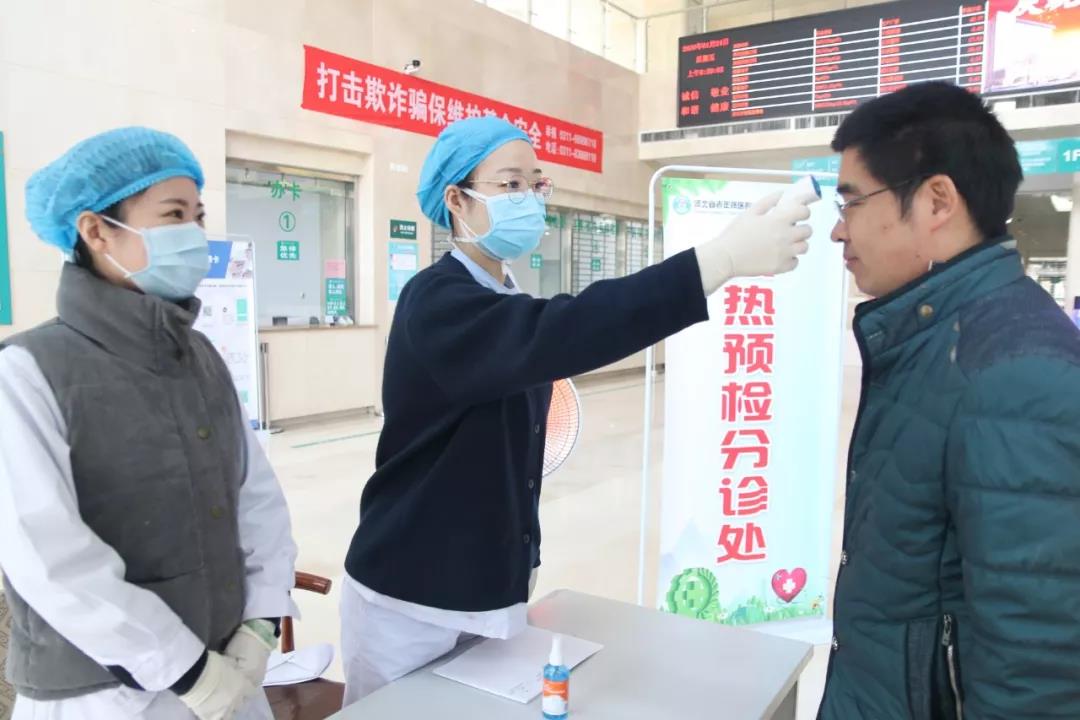 1月25日,大年初一,河北省启动重大突发公共卫生事件一级响应,为保障人民群众健康安全,预检分诊处医务人员严格按照防控要求,对每个来院人员做好体温检测及消毒工作。