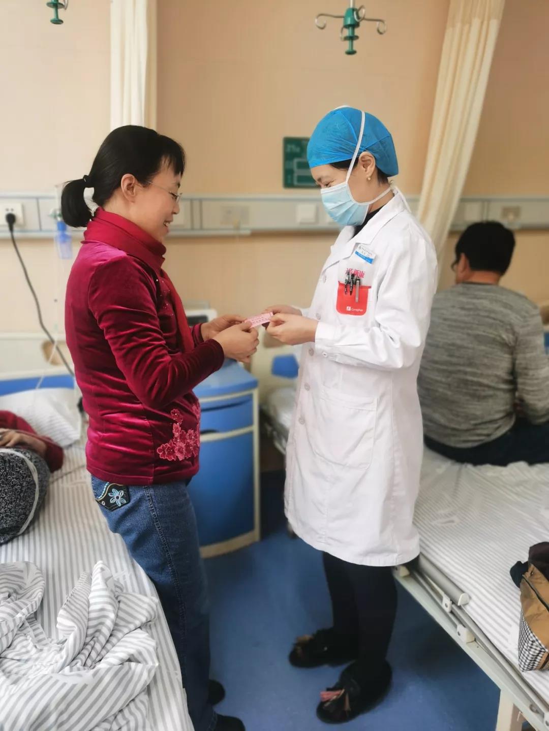 呼吸肾内科副主任赵芳给住院患者送上医院特意准备的暖心饺子券