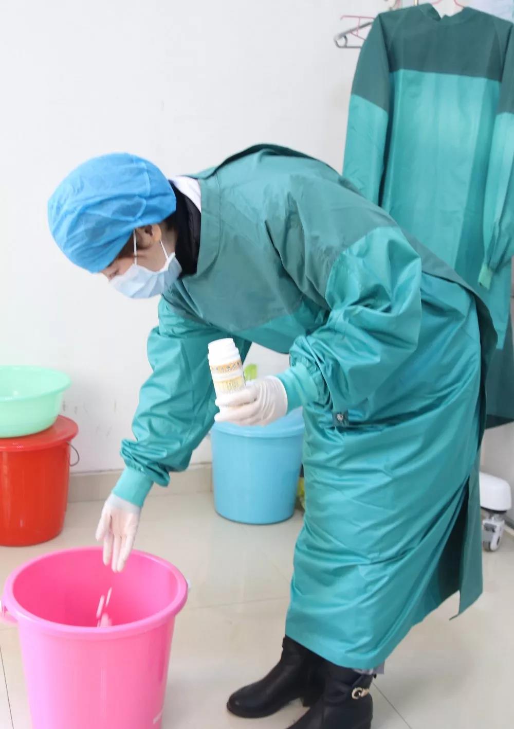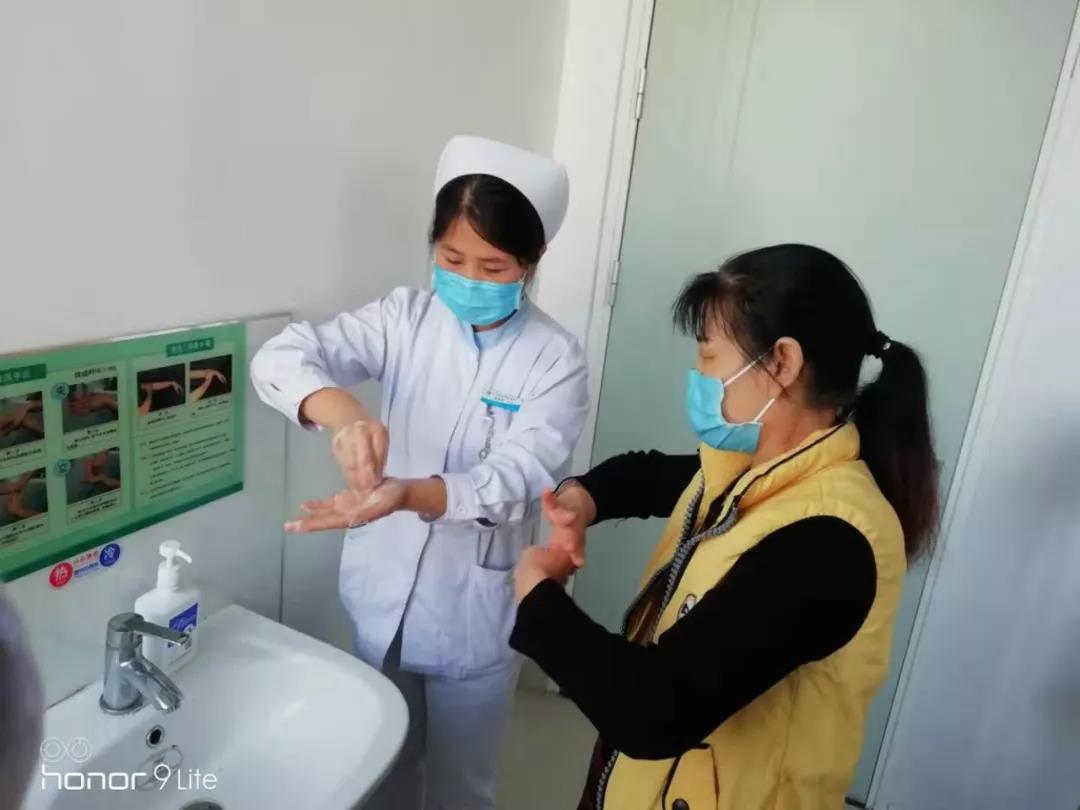 在做好护理工作的同时,病区护理人员还对自己负责的病区内护工进行一对一“手卫生”培训,要求护工严格按照“七步洗手法”进行消毒防护。