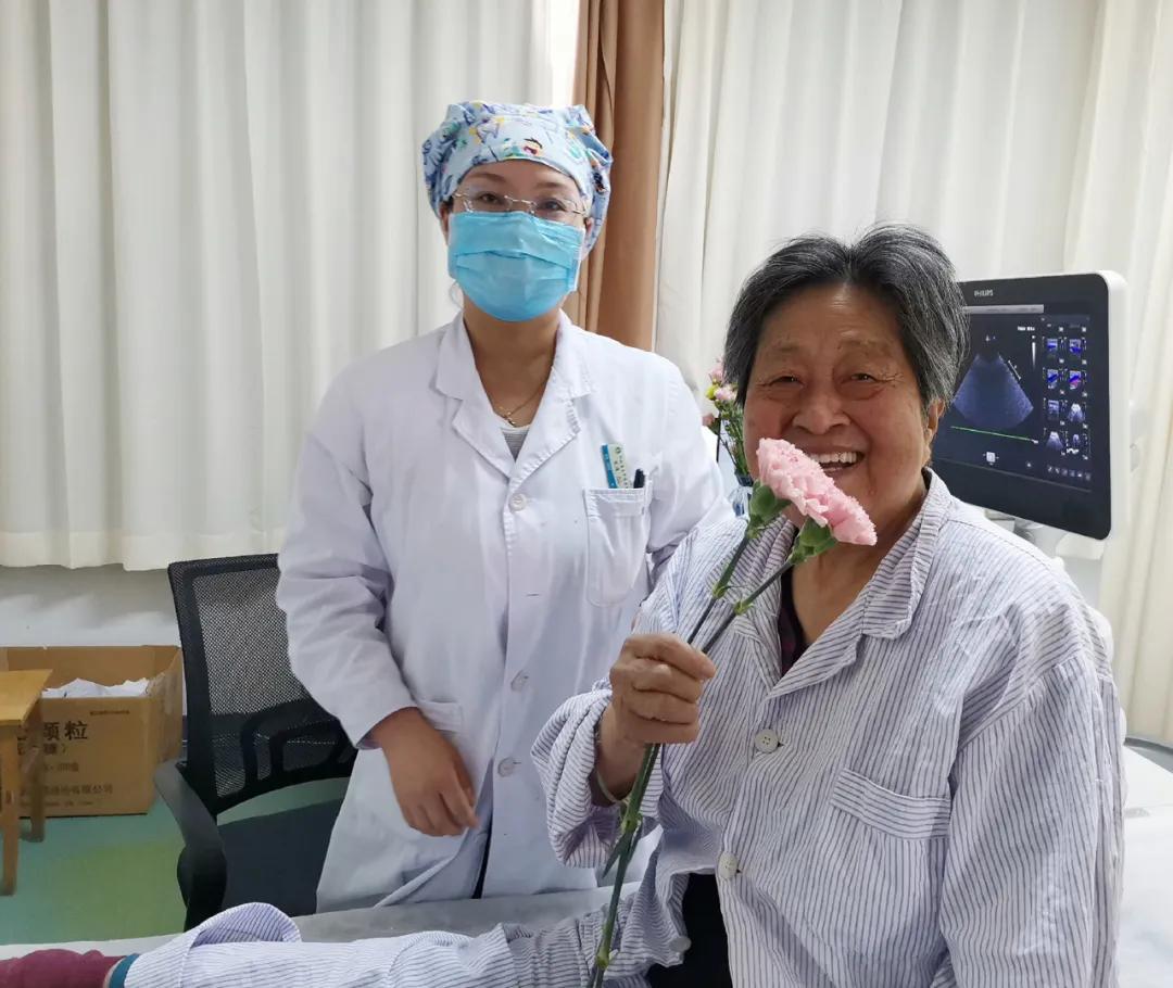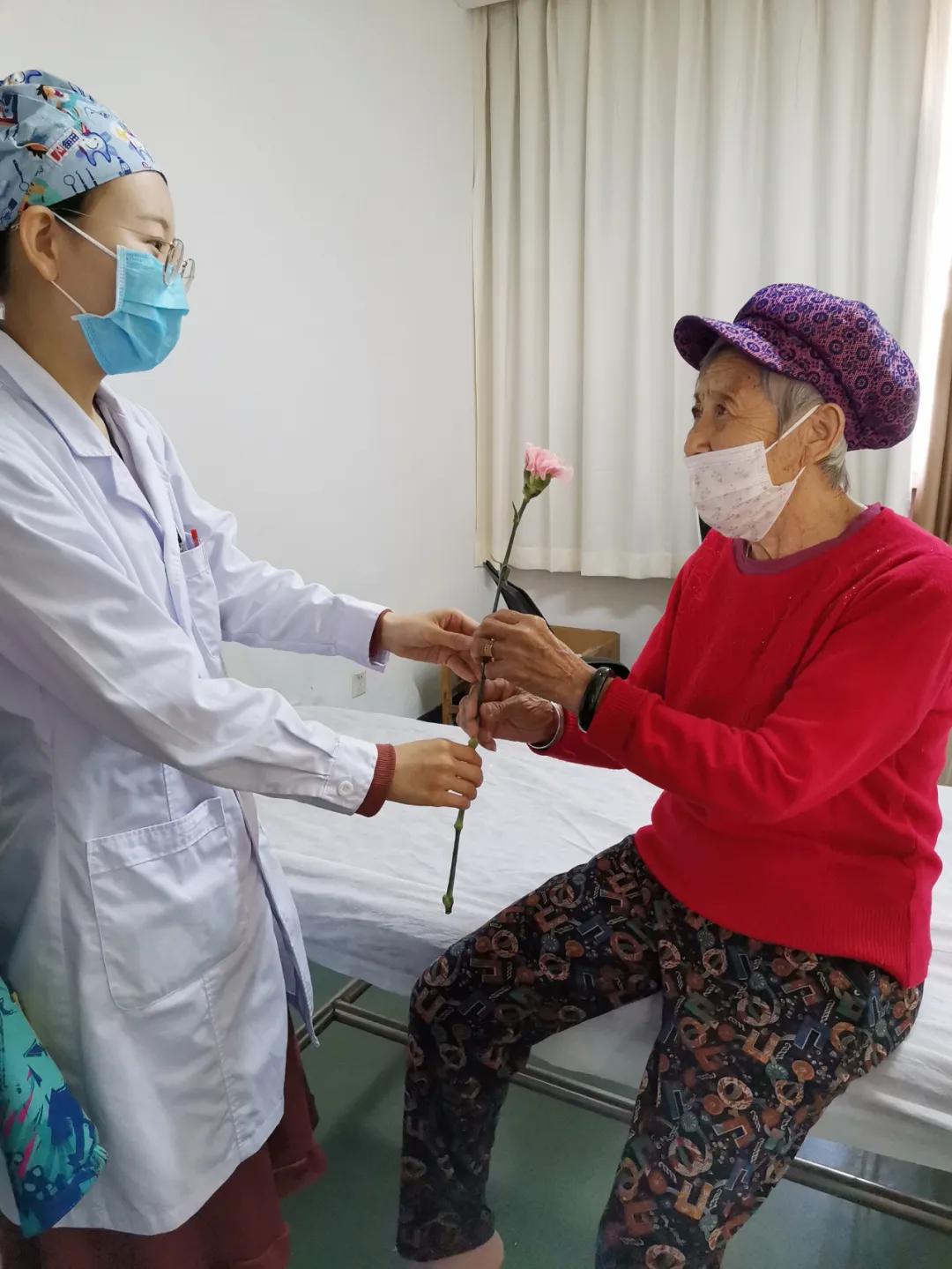 鲜花和祝福承载着功能科医生对妈妈们最美好的祝愿。64岁的孙奶奶接过鲜花,感动地说:“你们想得这么周到,谢谢谢谢,这是我最难忘的母亲节!”