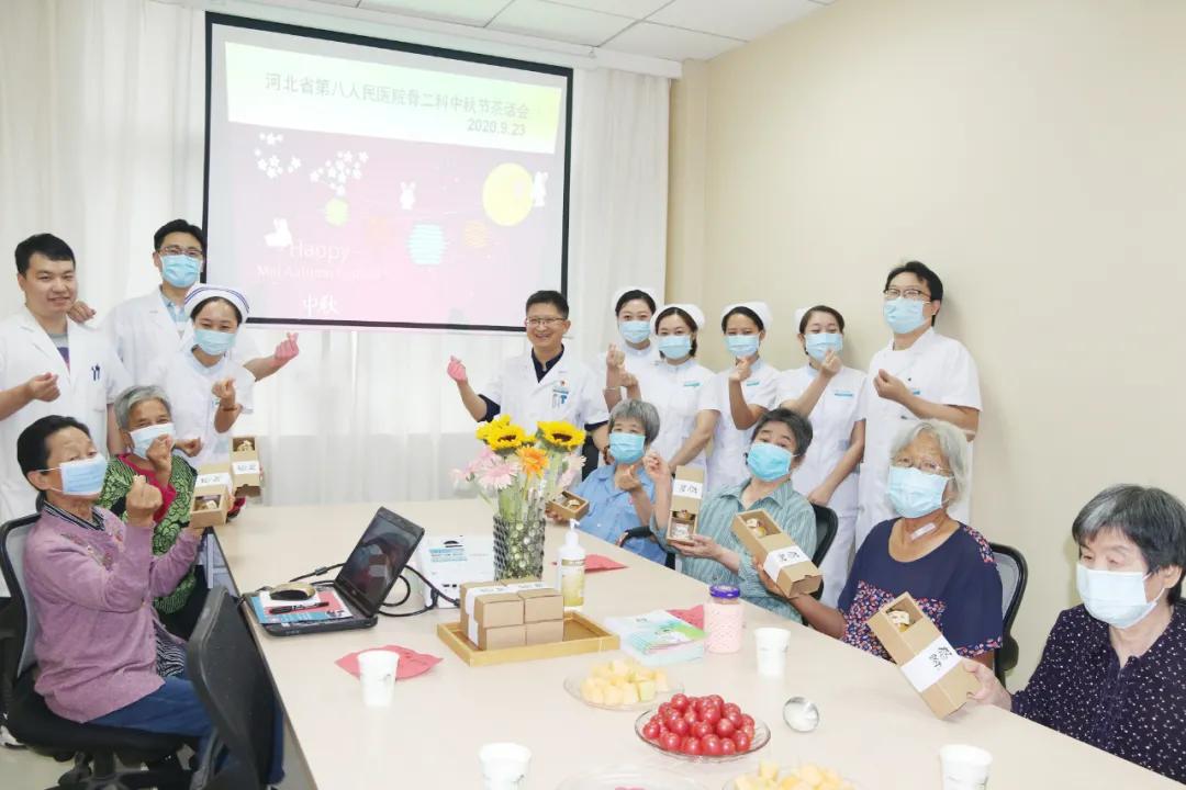 2020年国庆、中秋即将到来之际,河北省第八人民医院(河北省老年病医院)骨二科的传统茶歇文化活动——医患联谊茶话会又开始啦!这是医院更名后的第一场活动,传统的祥和氛围中又多了几分迎新的喜庆。