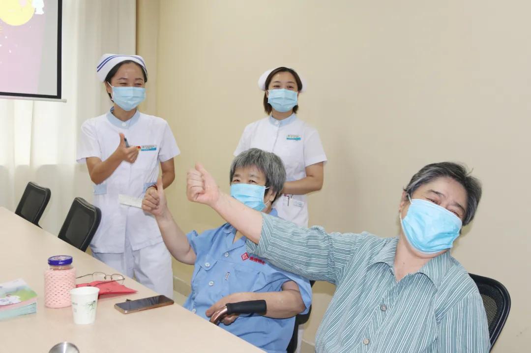 茶话会上,还安排了医患分享健康环节,“美小护”教大家学习保护膝关节和正确的洗手方法,护士教得仔细,大家学得认真。