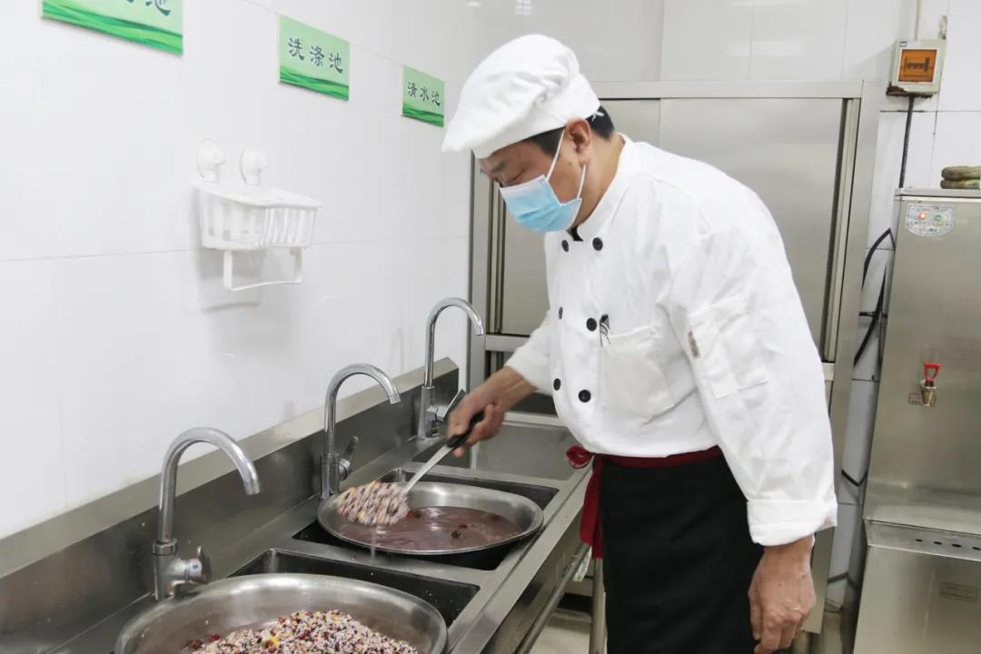 早上不到5点,食堂师傅就开始淘洗提前泡好的八宝米,为全院人员准备八宝粥