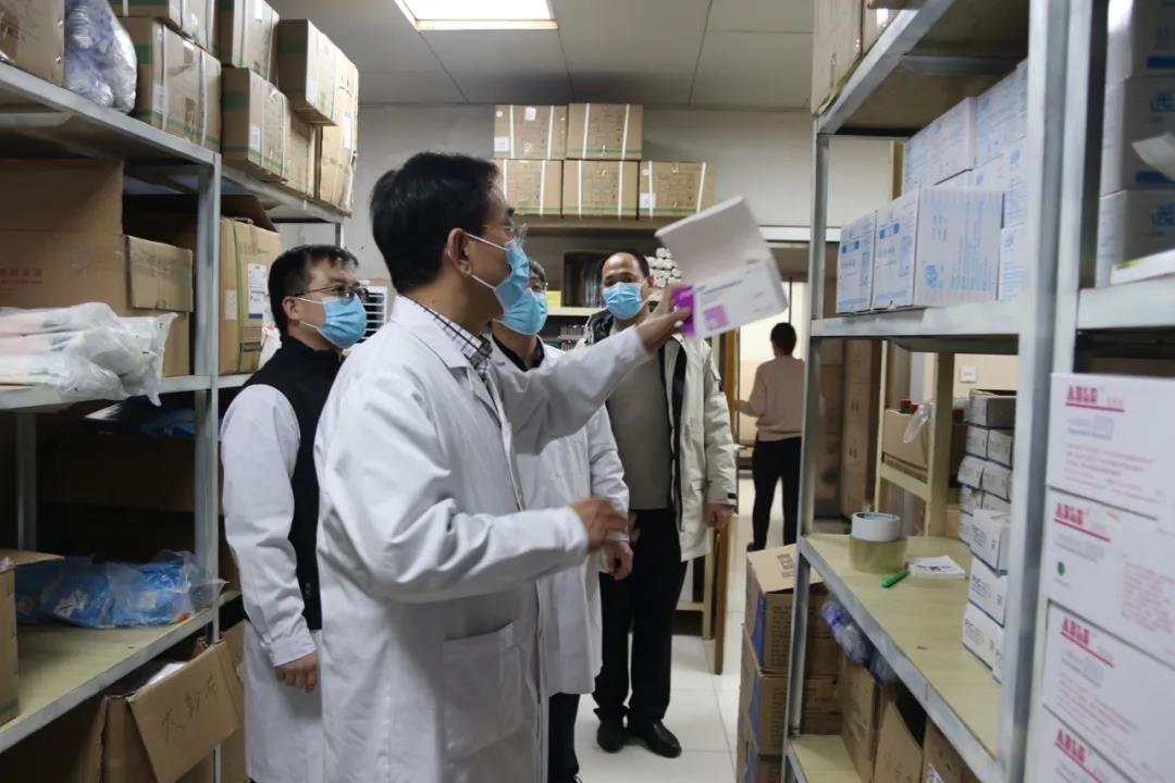 1月22日,院党委书记刘建军、院长马爱军参加院感检查组的日常工作。他们分别来到病区、预检分诊处、门诊相关科室,查阅流调资料和消杀记录。在医疗废物暂存点,刘建军详细了解医疗废物处置的流程和责任人,叮嘱管理员要不断学习院感管理知识,鼓励他们把理论和实践结合起来,要“管好人、看好门”,为院感工作尽职尽责。随后,刘建军一行还来到医院药械库房,查看了防疫物资台账,要求工作人员严把质量关,确保防疫物资高标准、足供给。
