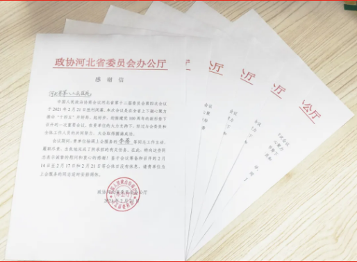 2月22日,政协河北省委员会办公厅致信河北省第八人民医院,对承担省政协十二届委员会第四次会议有关工作任务的医院护理团队提出表扬。