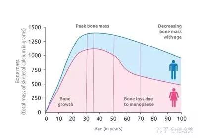 人的一生中,不同年龄时期骨钙含量是不同的,30岁左右人的骨含量达到一生中的高峰,50岁起,骨量平均每年丢失0.5-1%,绝经后妇女平均每年丢失骨量3-5%,女性骨丢失最终可达峰值骨量的30-40%,男性丢失20-30%。