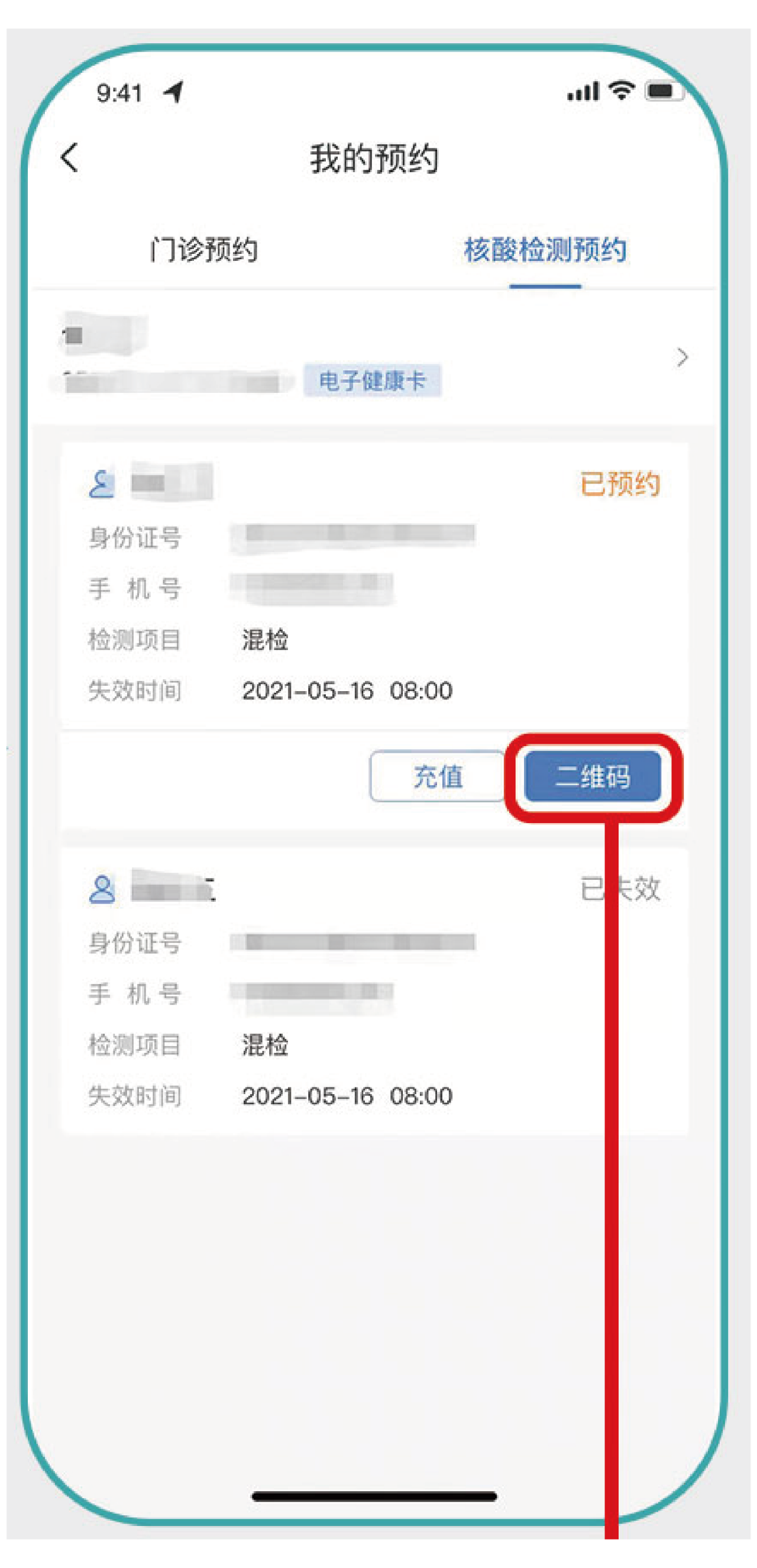 2.查找预约。核酸检测预约,查找二维码 ↓↓↓