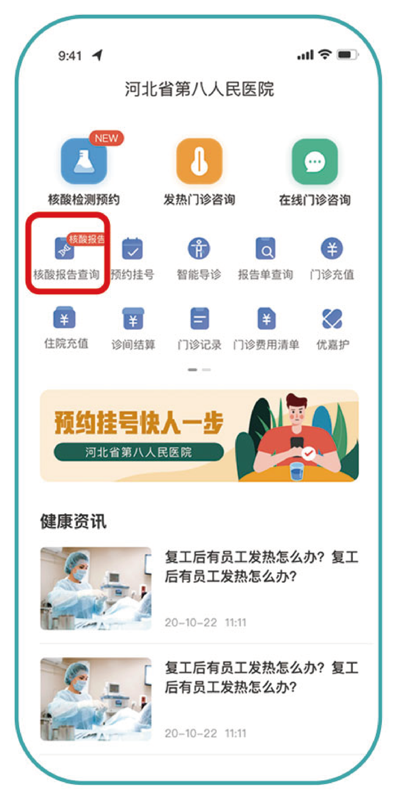 为给“愿检尽检”人群提供更加便捷、安全的核酸检测服务,河北省第八人民医院(河北省老年病医院)优化核酸检测流程,即日起开通线上核酸检测预约、支付、查询服务。