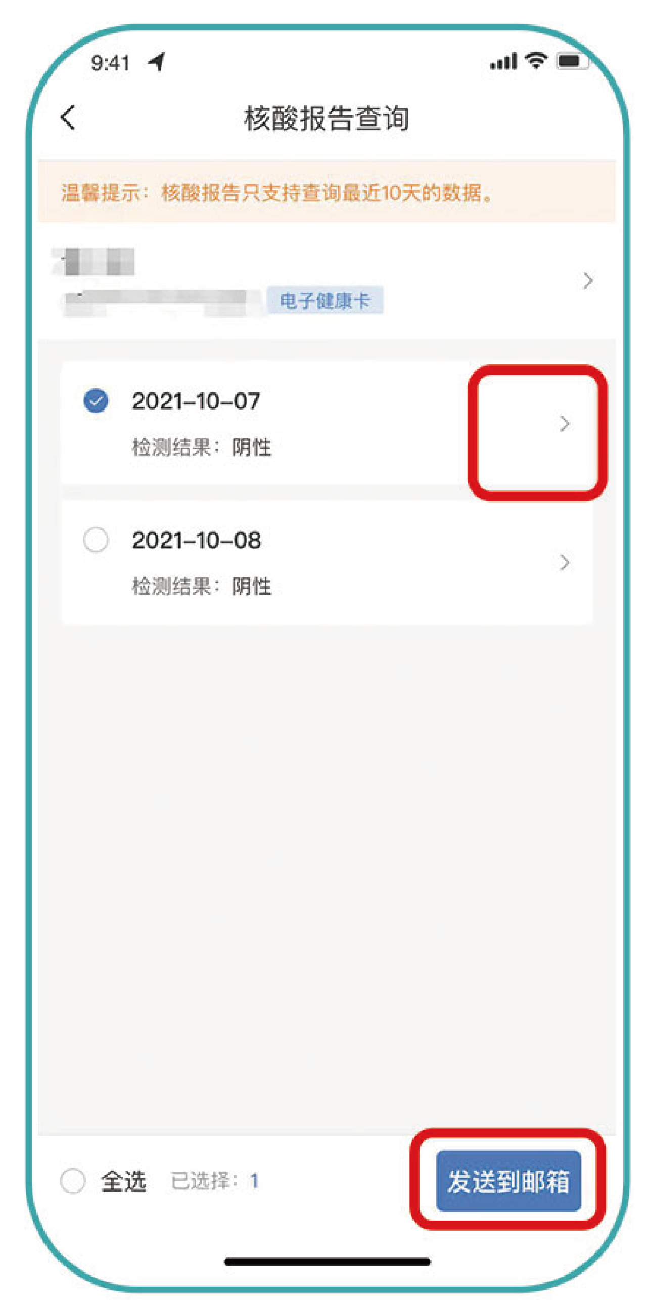 2.选择查看核酸报告。点击查看核酸检测结果 ↓↓↓
