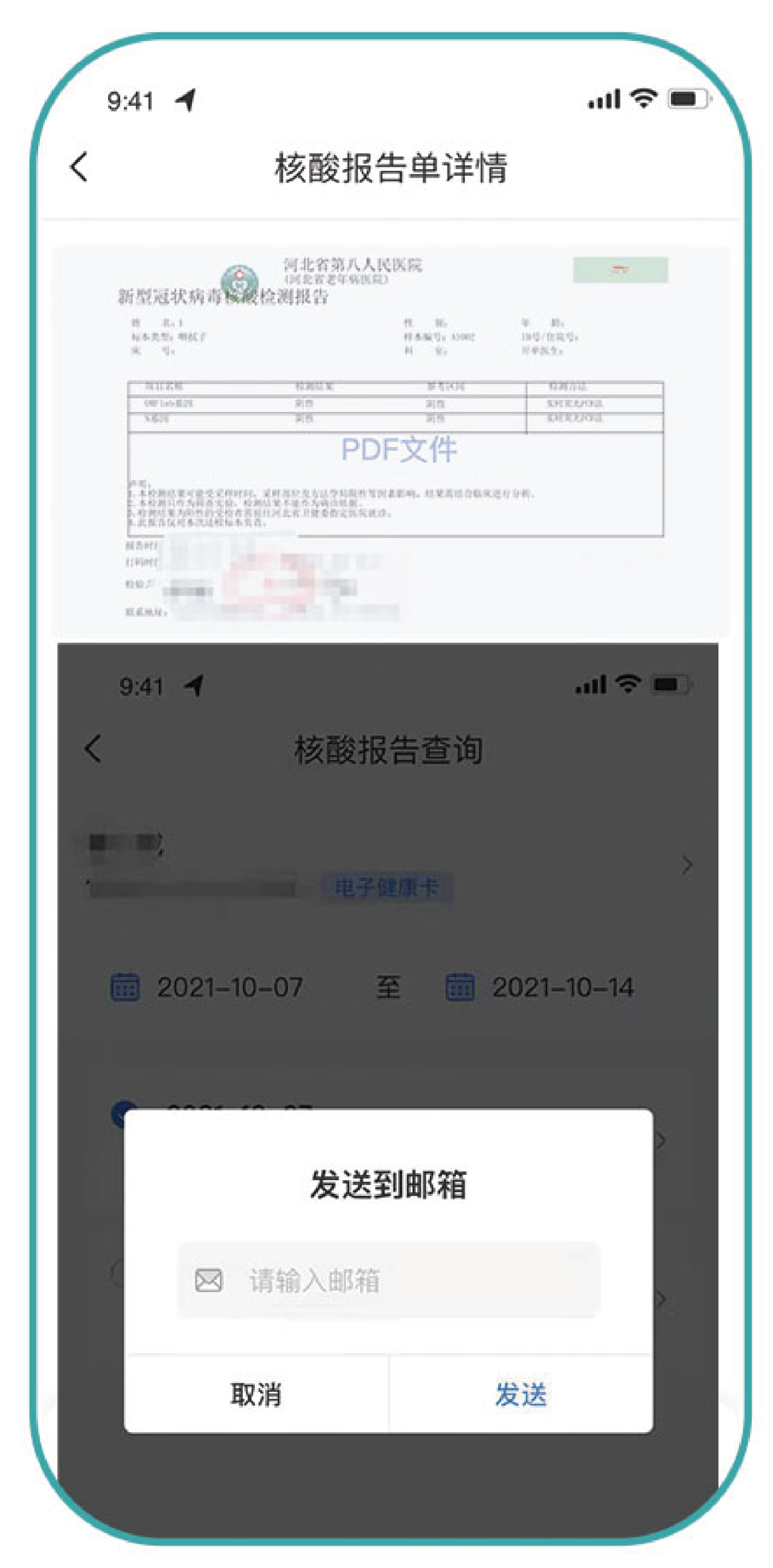 3.选择打印核酸报告。核酸报告结果以“PDF”格式发送到邮箱,可自行打印↓↓↓