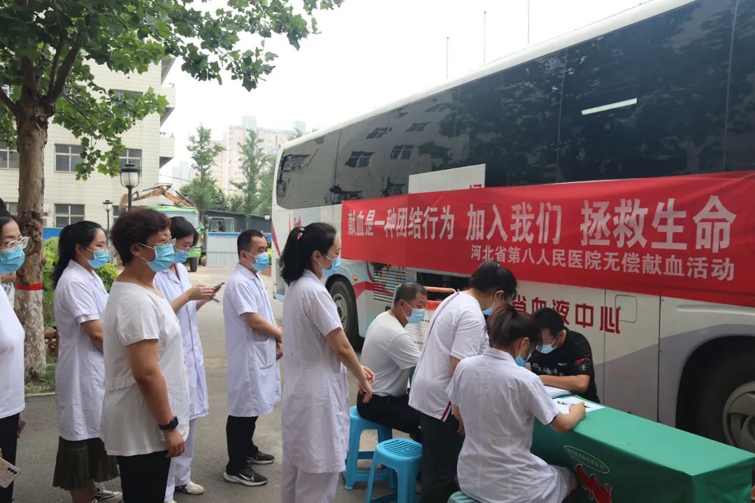 “献血是一种团结行为。加入我们,拯救生命”。6月16日,河北省第八人民医院组织开展无偿献血活动。