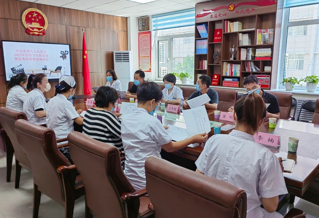 传播疾病防治知识,提高全民健康素养,以实际行动迎接“8.19中国医师节”的到来,8月16日,河北省第八人民医院举办科普微视频优秀作品评比活动,副院长王杰超、栗爱珍参加评选。